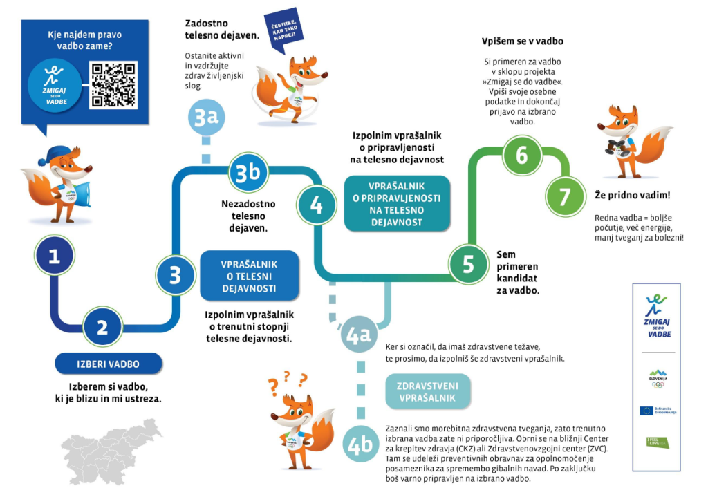 Posameznik se lahko vpiše v vadbo, če sodi v skupino telesno nedejavnih odraslih in na podlagi izpolnitve presejalnega vprašalnika izpolnjuje pogoje za prijavo.