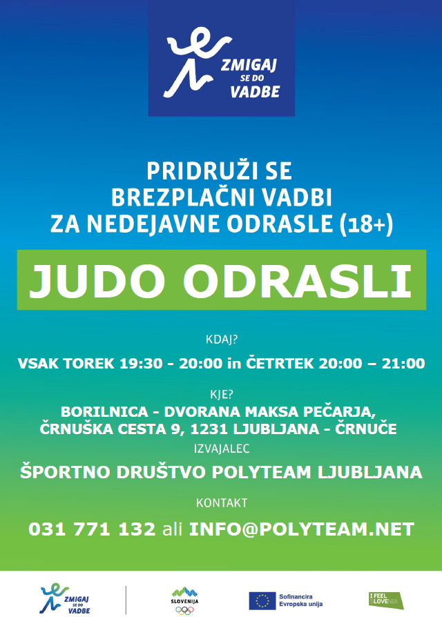 Vljudno vas vabimo na brezplačno vadbo – JUDO ODRASLI. Spodaj posredujemo povezavo do prijave: