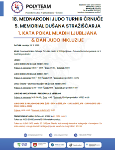 18. MEDNARODNI JUDO TURNIR ČRNUČE / 5. MEMORIAL DUŠANA STRAŽIŠČARJA / 1. KATA TURNIR MLADIH LJUBLJANA / DNEVI JUDO INKLUZIJE (ned. 23.11.2025)