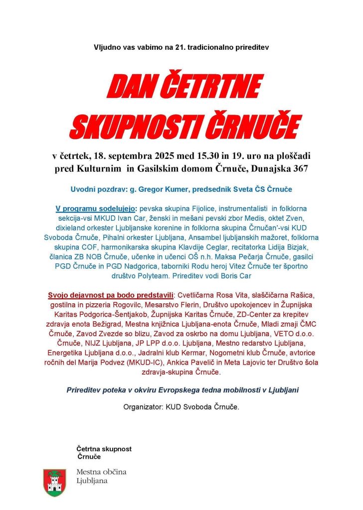 21. Dan sosedov v Črnučah V četrtek, 18. septembra, smo se predstavili v okviru Evropskega tedna mobilnosti ter družili s podjetji in društvi iz naše krajevne skupnosti.